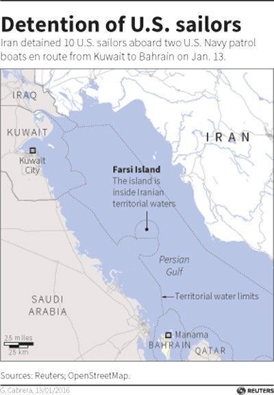 روز دوشنبه ۱۱ ژانویه، دو فروند شناورآمریکایی که برطبق بیانیه سپاه پاسداران، این شناورها رزمی بوده و حامل ده تفنگدار مسلح هستند وارد آبهای ایران در نزدیکیهای جزیره فارسی شده و توسط واحدهای شناوری رزمی منطقه دوم نیروی دریایی سپاه توقیف و به جزیره فارسی منتقل شدند.