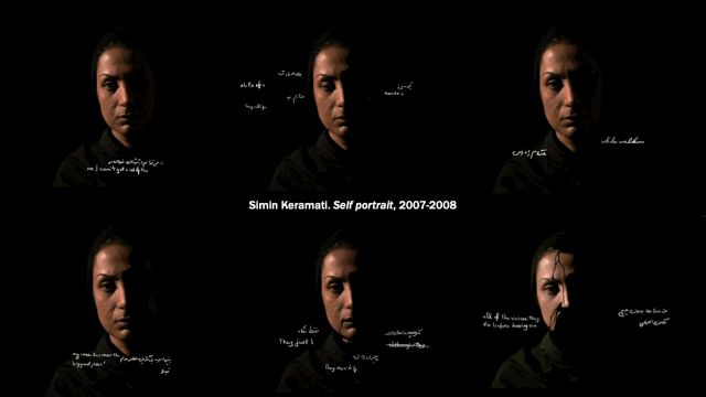 دکتر شاهنده سپس به آثار سیمین کرامتی پرداخت؛ بهویژه ویدئوی «خودنگاره» (۲۰۰۷–۲۰۰۸). در این اثر، چهرهی هنرمند بهتدریج زیر مایعی سیاه محو میشود، در حالی که دستنوشتههایی دوزبانه بر تصویر ظاهر میشوند. این محوشدگی تدریجی، بهگفتهی دکتر شاهنده، استعارهای از سانسور، حذف فردیت و فشار روانی است که بسیاری از زنان در فضای عمومی تجربه میکنند.