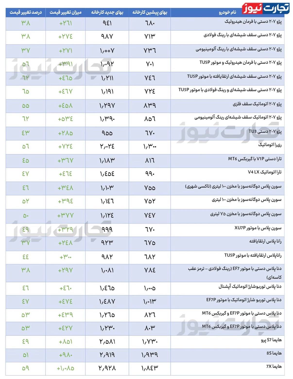 گروه خودروسازی «ایران خودرو» هفتم بهمنماه نرخ جدید محصولات خود را اعلام کرد. فهرست منتشر شده نشان میداد قیمت محصولات این شرکت ۳۷ تا ۶۵ درصد افزایش یافته است.
