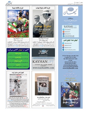 آگهی در کیهان آگاهی میآورد برایخریدسالنامهبهسایتکیهانلندنمراجعهفرمایید SPOTLIGHT ON A GLOBAL IRANIAN COMMUNITY