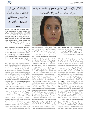=واحد ضدتروریسم پلیس دهلی مردی را بازداشت اساس آن باید روز ۱۳آبان در دادگاه انقلاب حاضر شود. =با وجود گذشت ۷سال از حبس زهره سرو ،بازجو با
